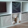 Модель можно размещать в любых сухих помещениях. Материалом служит гипоаллергенная полиэстеровая ткань, благодаря чему вещи внутри хорошо проветриваются, не слеживаются и не приобретают неприятного запаха. Размер короба — 31х31х31 см.